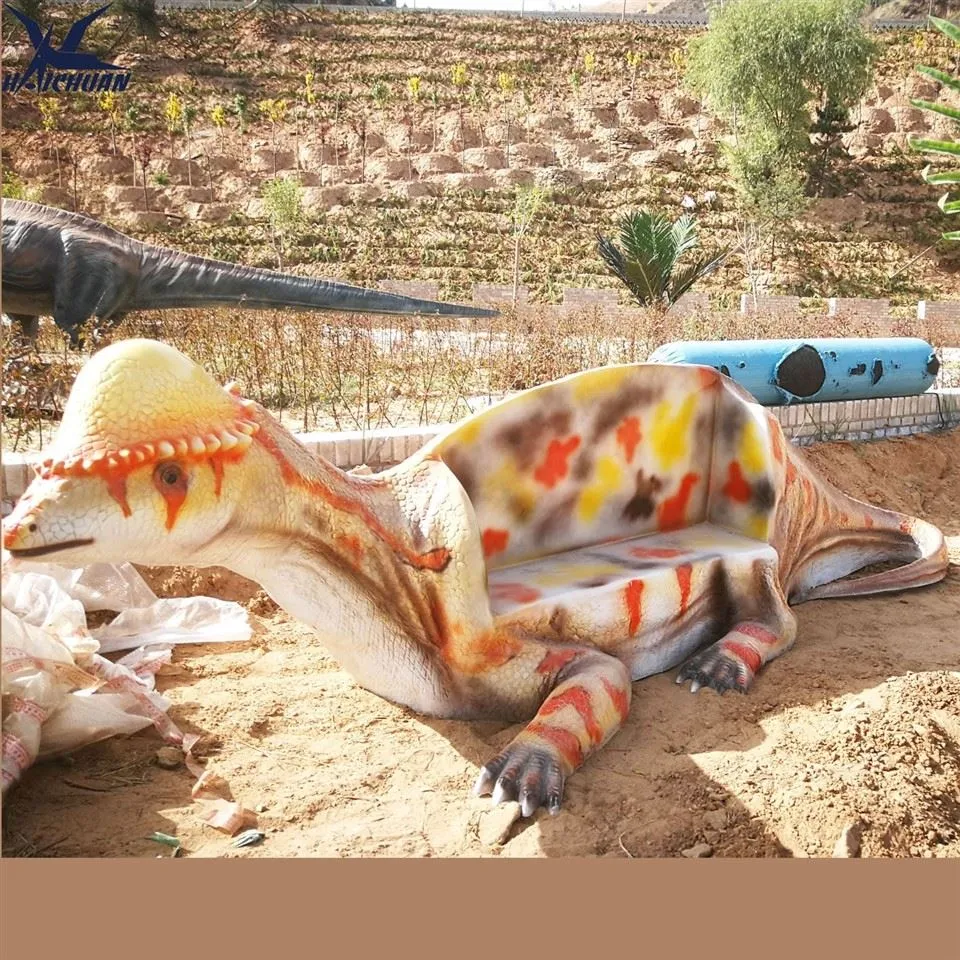 Spersonalizowana ławka z włókna szklanego w kształcie krzesła dinozaura do użytku na zewnątrz